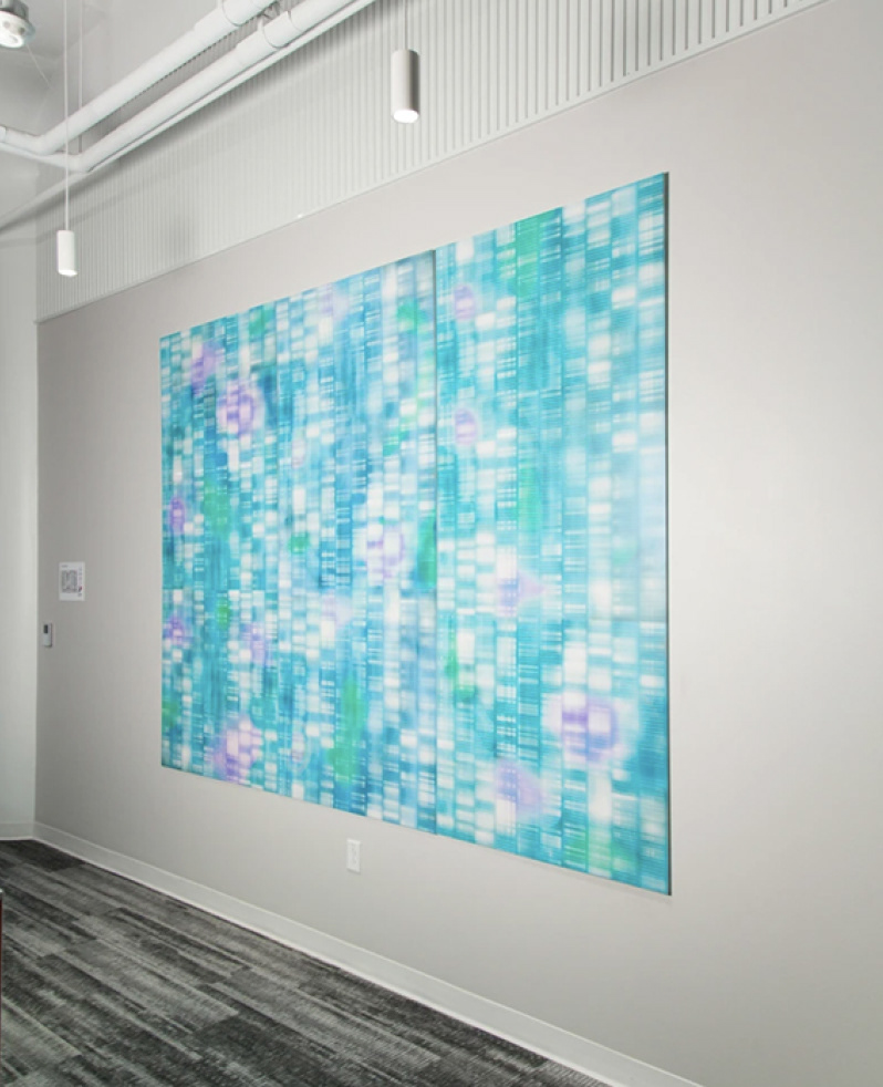 A Collaboration on Spark Therapeutics, a gene therapy company, through the addition of an expansive art program in their Philadelphia Headquarters that highlights the science of gene therapy. Using art as a vehicle to represent scientific research, a variety of artistic mediums was utilized to reflect the company’s research-base mission statement.