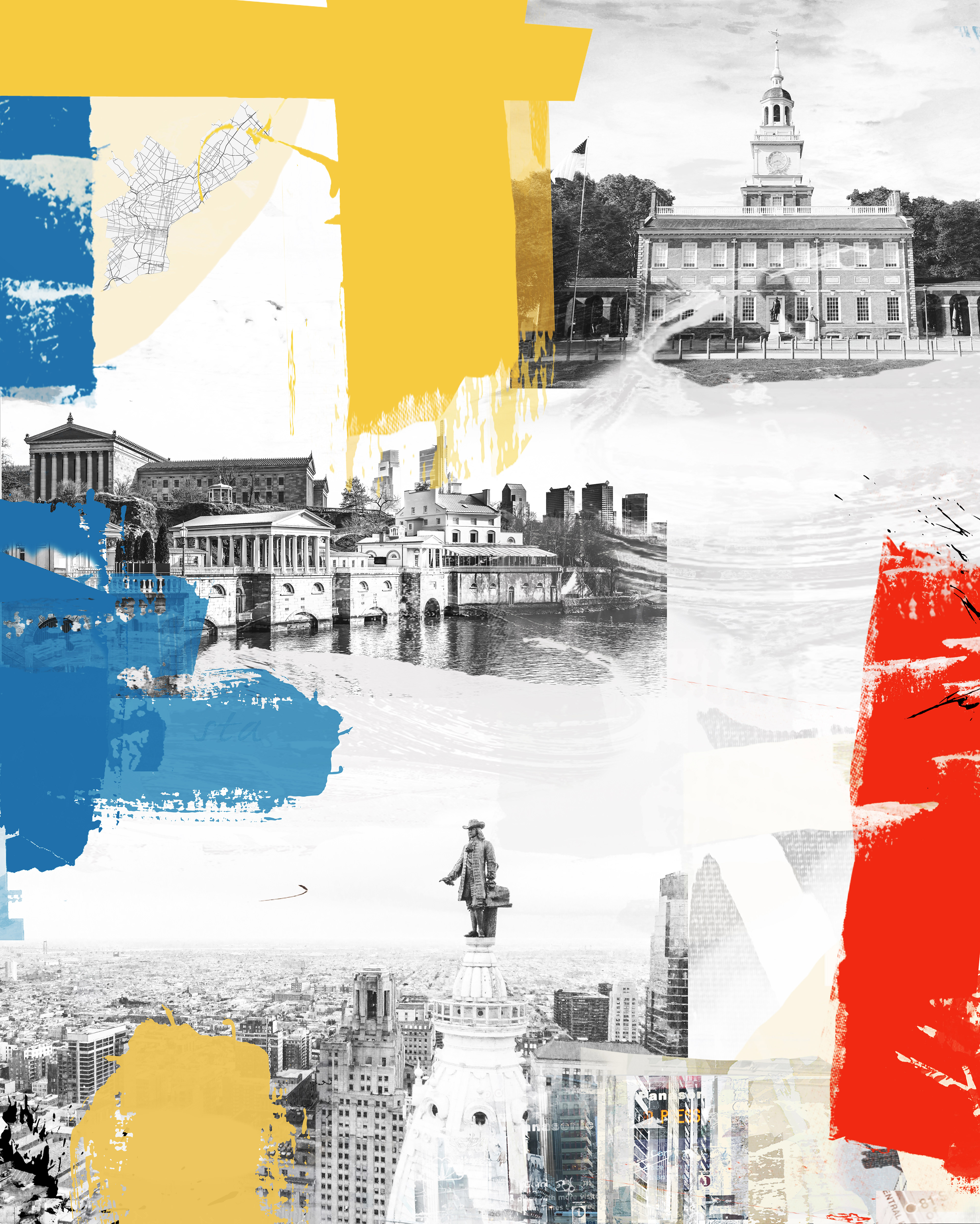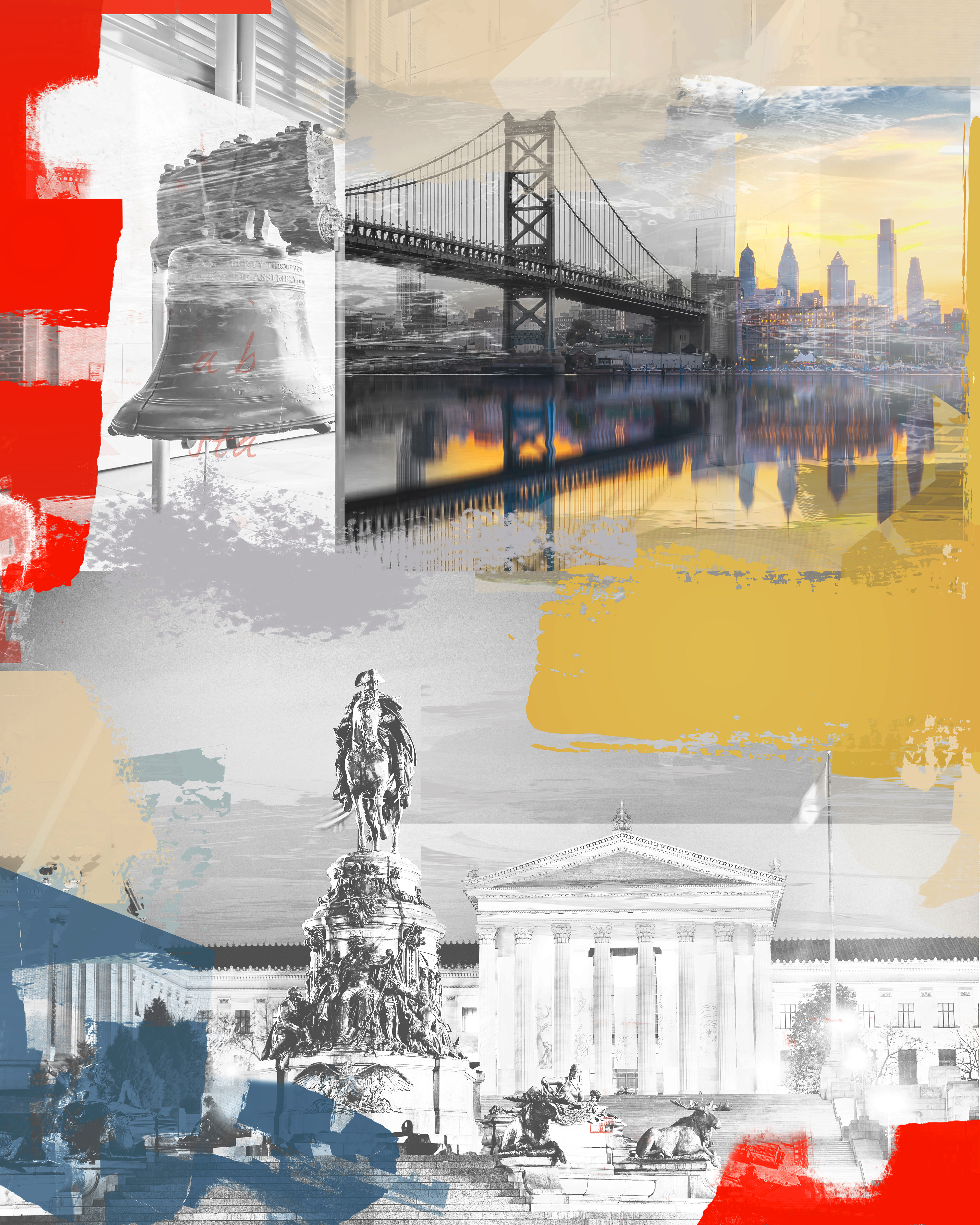 These two large-format art pieces were created for Pfizer as part of a commissioned project celebrating Philadelphia’s history, culture, and innovation. The series blends photography, collage, and painterly textures to create a modern yet timeless tribute to the city referencing both Philadelphia’s flag and Pfizer’s color palette.